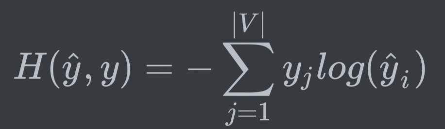 - 스코어 벡터를 ŷ , 우리가 실제로 값을 알고 있는 중심 단어의 one-hot vector를 y라고 하자