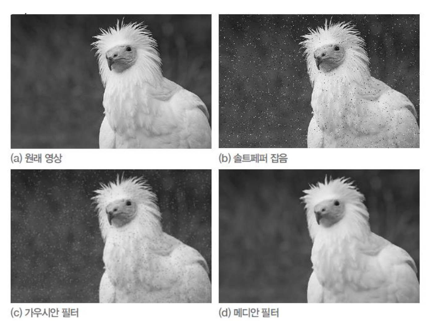 - 솔트페퍼 잡음(Salt&Pepper Noise)에 효과적