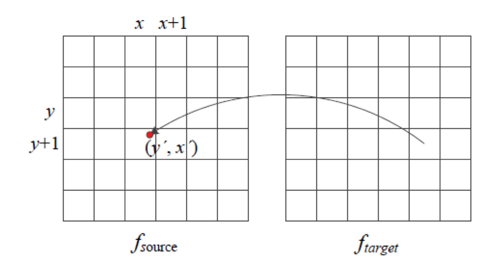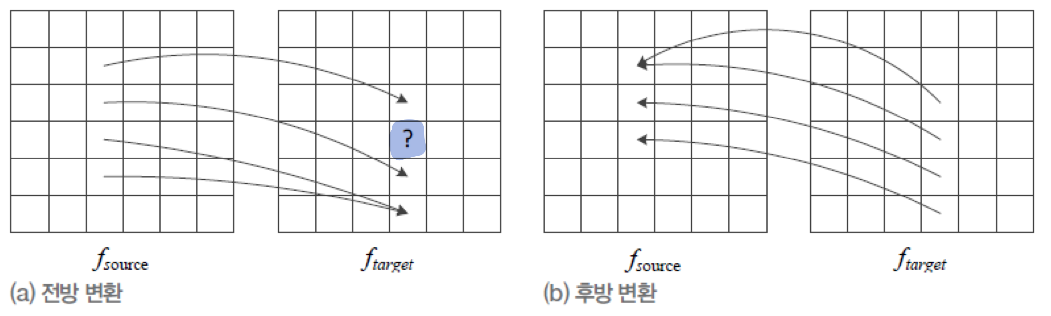 - output: 기하변환된 영상 $f_{target}(j,i)$, $0 <= j <= M-1, 0 <= i <= N-1$