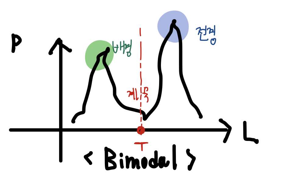 - 두 봉오리 사이의 계곡을 임계값 T로 결정(-> Bimodal)
