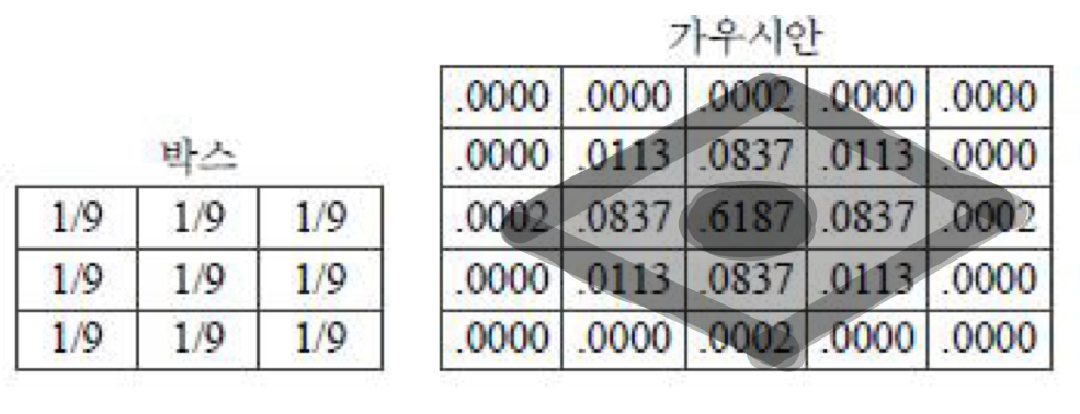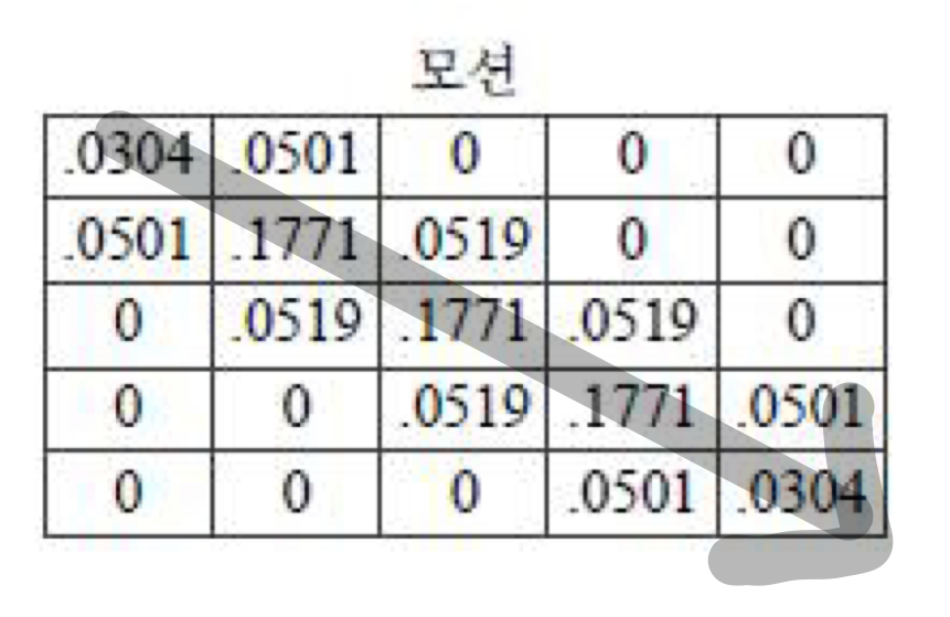- 대각 방향으로 값이 변함 -> 대각 방향으로 블러(blur)가 일어남