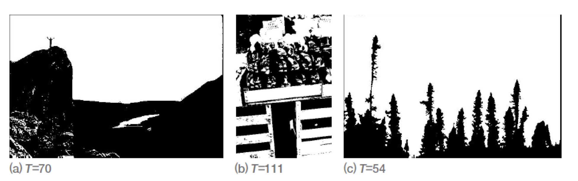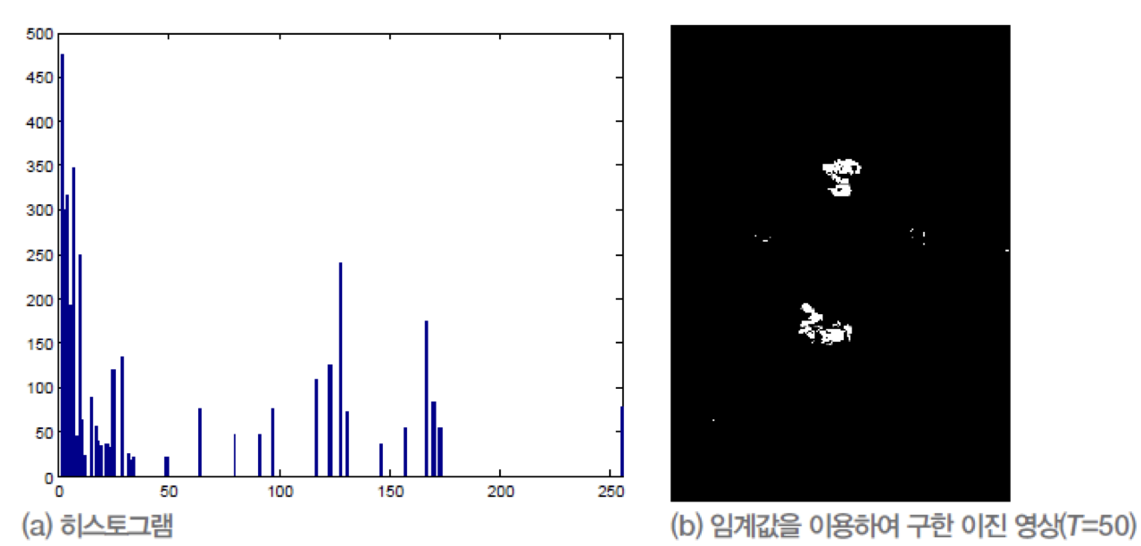 - 명암영상을 흑(0)과 백(1)만 가진 이진 영상으로 변환