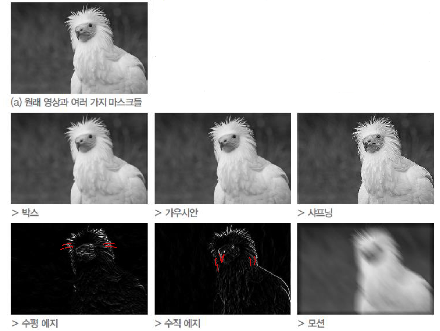 - 수직 에지는 수평방향으로 검출하여, 원본영상에서 수직(|)에 해당하는 에지를 검출하게 됨