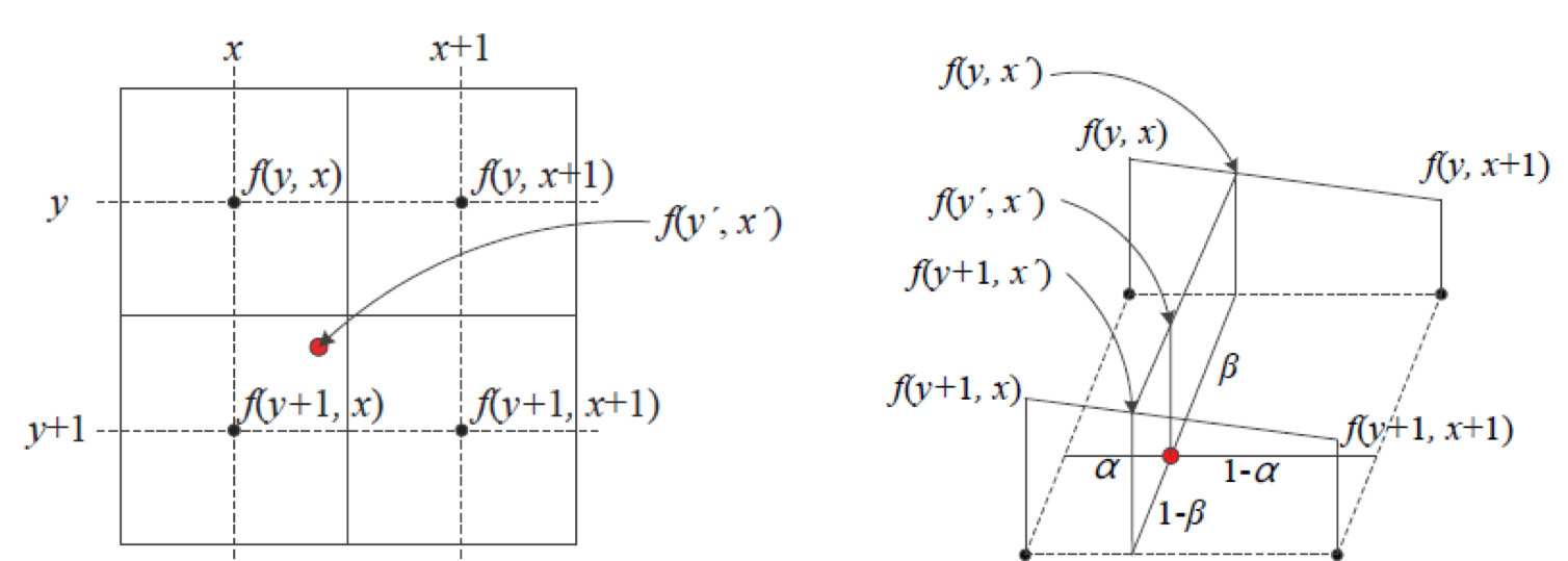 - output: 기하변환된 영상 $f_{target}(j,i)$, $0 <= j <= M-1, 0 <= i <= N-1