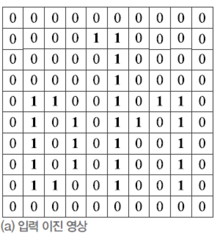 - input : 이진영상 $b(j,i)$, $0 <= j <= M-1, 0 <= i <= N-1$