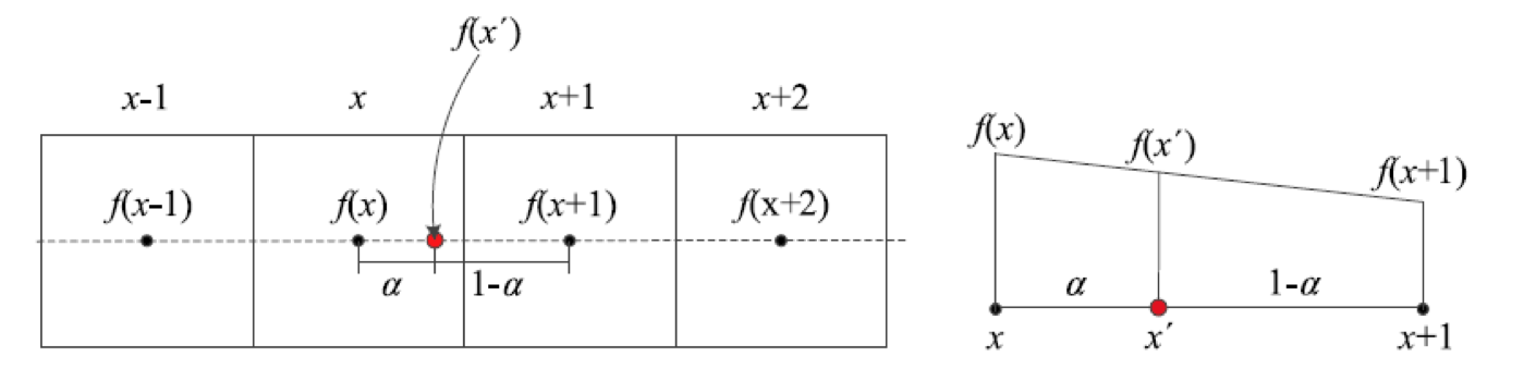 • $f(\dot{x}) = (1-\alpha)f(x) + \alpha f(x+1)$