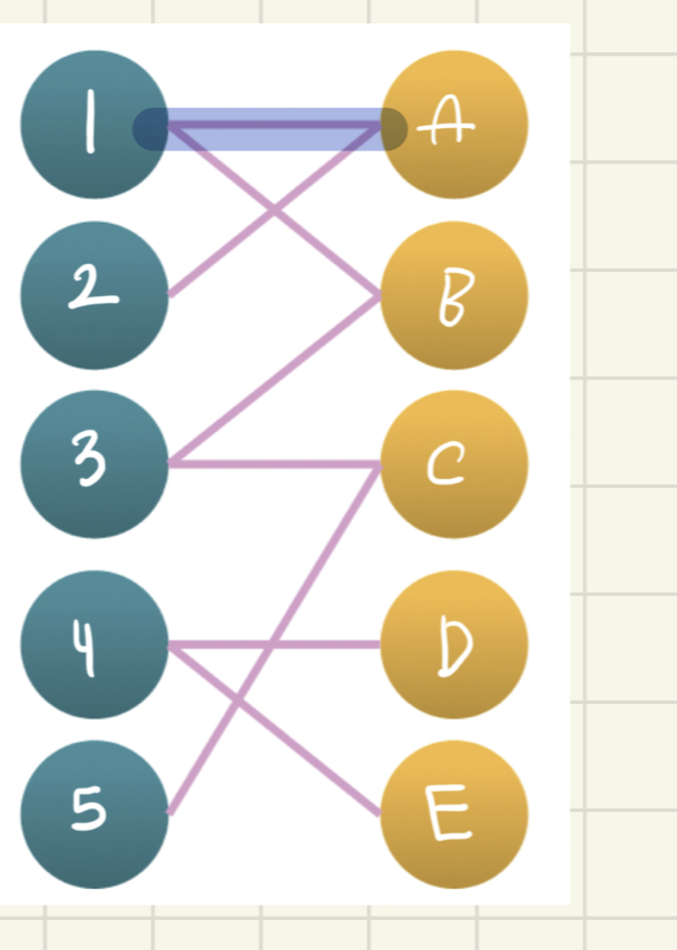 - 노드2와 A 매칭, 노드1이 B와 매칭
