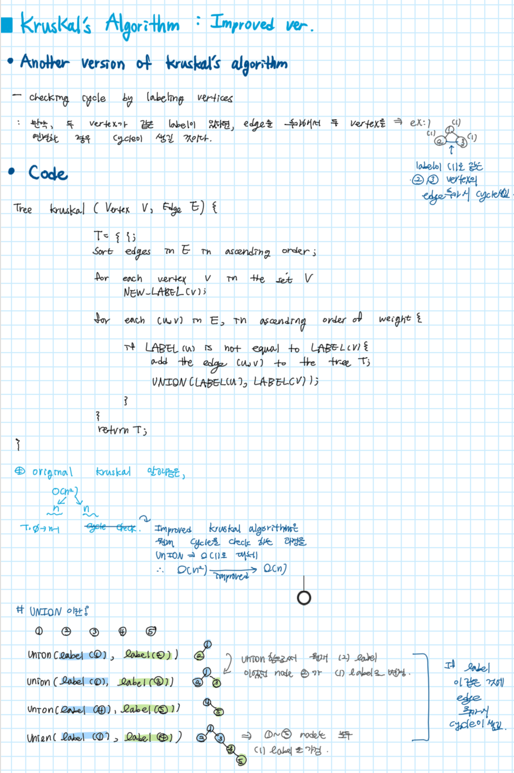 - Kruskal's Algorithm( Improved ver.) : 크루스칼 알고리즘-성능향상 버전