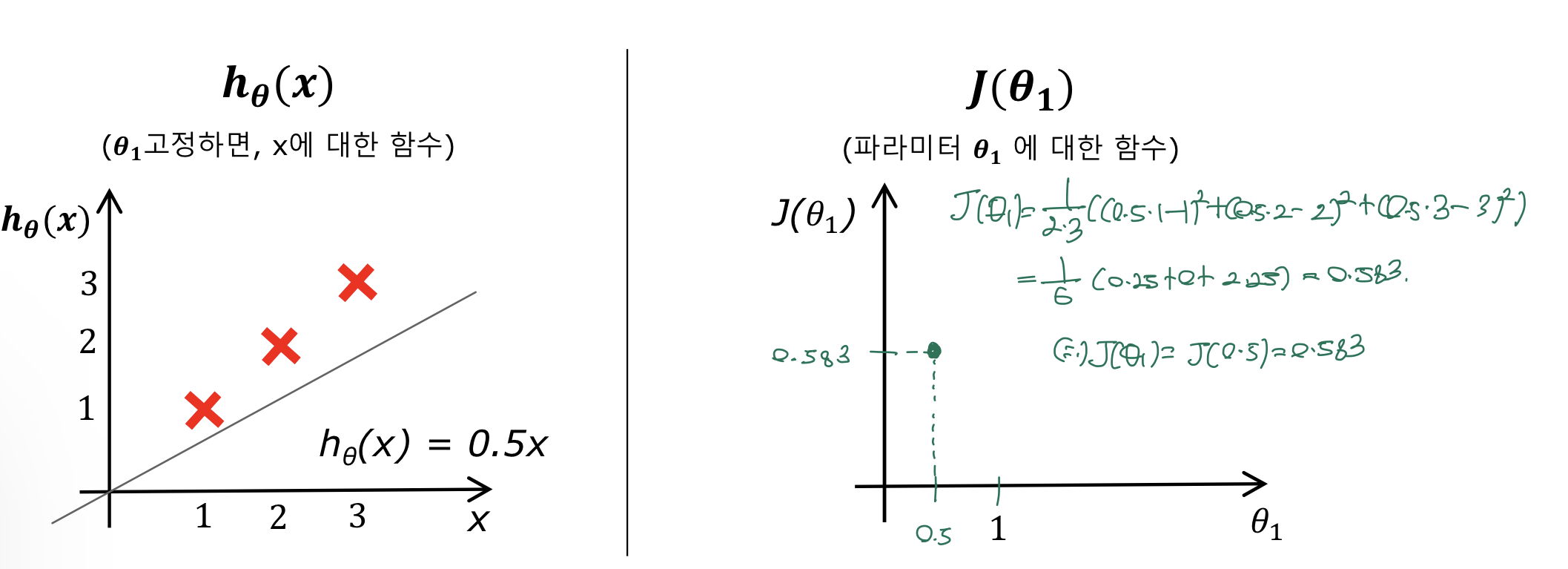 - $\theta_1 = 0.5$일 때 $J(\theta_1)$?