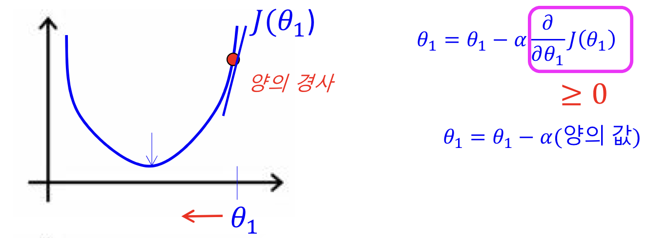 - 따라서 $\theta_1 = \theta_1 - \alpha *0 = \theta_1$