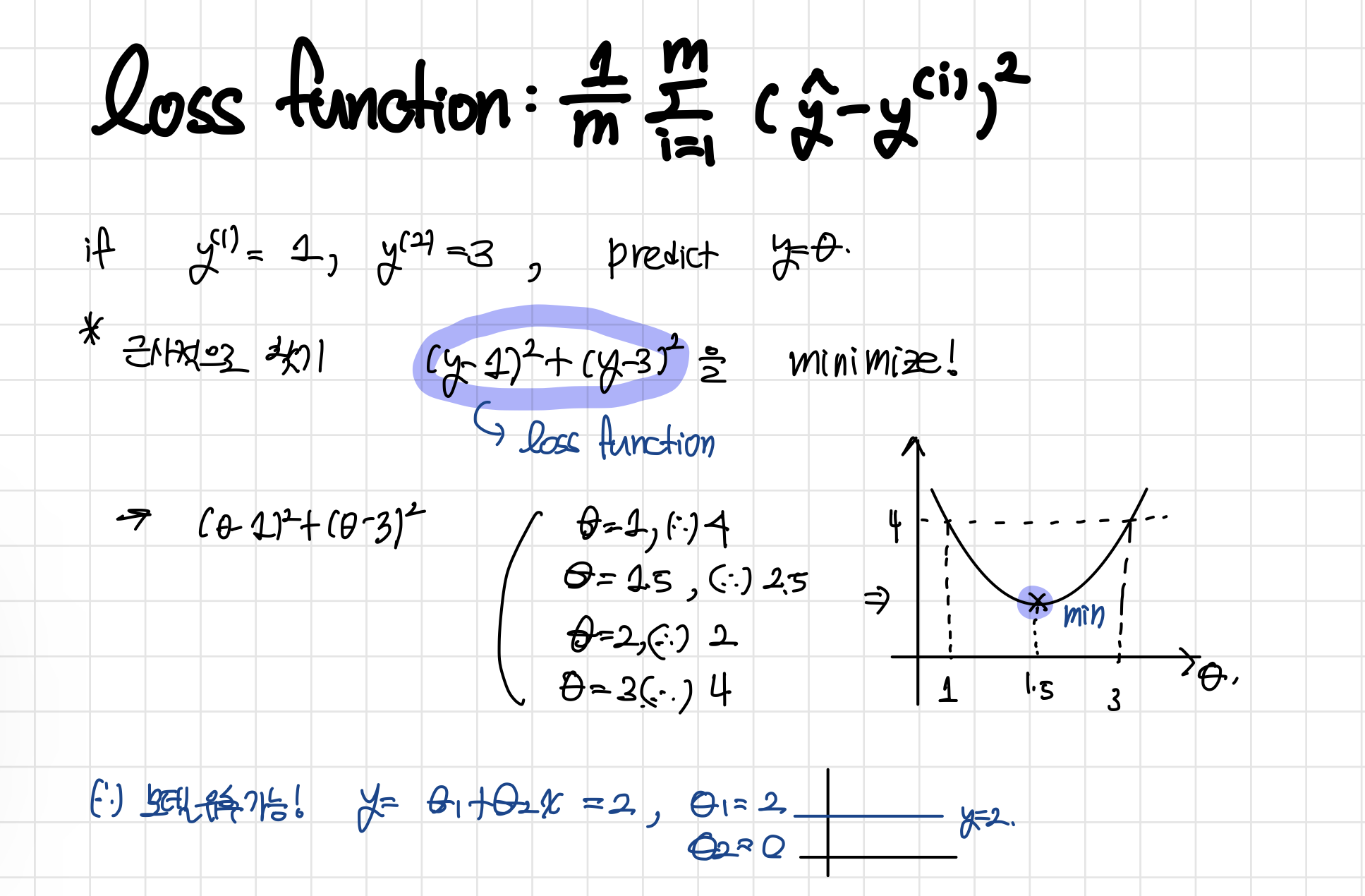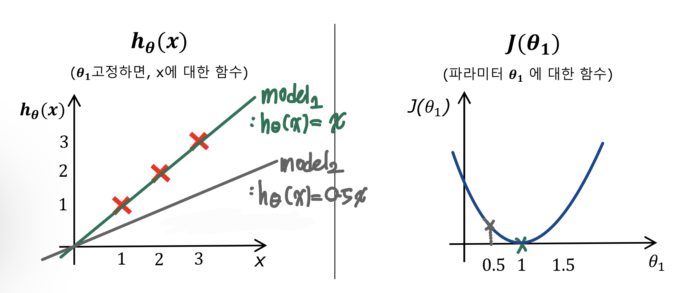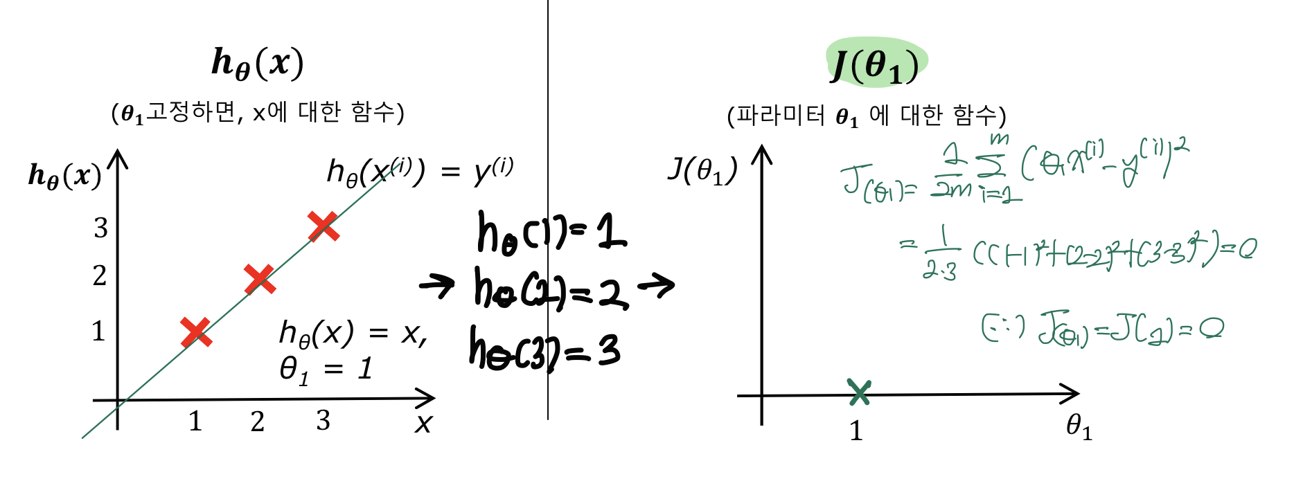 - $\theta_1 = 1$일 때 $J(\theta_1)$?