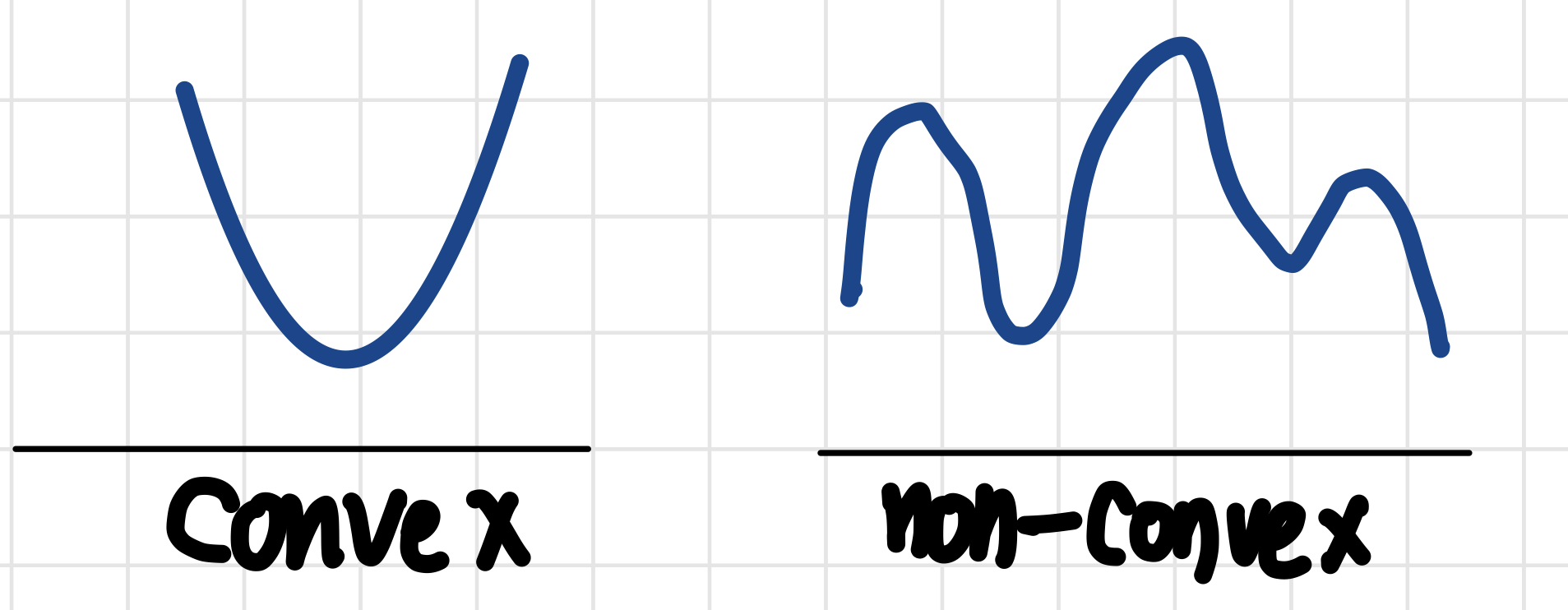 - 초기점(Initial point)를 아무 점으로 설정해도 지역 최소값(local minimum)이 오직 1