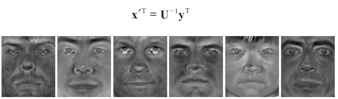 - 이들에 (6.43)식을 역으로 적용하여 얼굴 형태로 바꾸면 아래와 같은 결과가 나옴