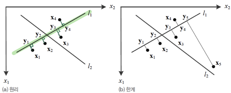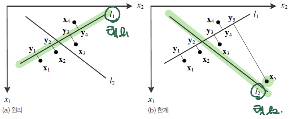 - 예) 아웃라이어 $x_5$가 포함되면 $l_2$를 선호