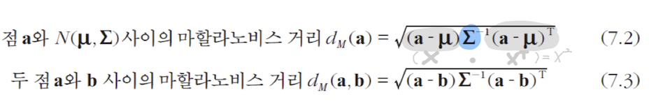 - 공분산 행렬 $\sum$을 이용하여 확률 분포를 고려(c가 더 가까움)