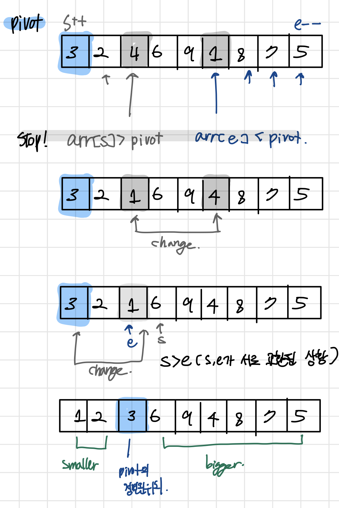 # s,e위치가 스왑되지 않았다면 arr[s],arr[e]를 스왑