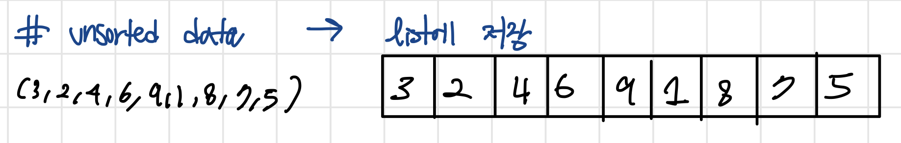 1) 정렬되지 않은 데이터 -> 리스트로 입력 받기
