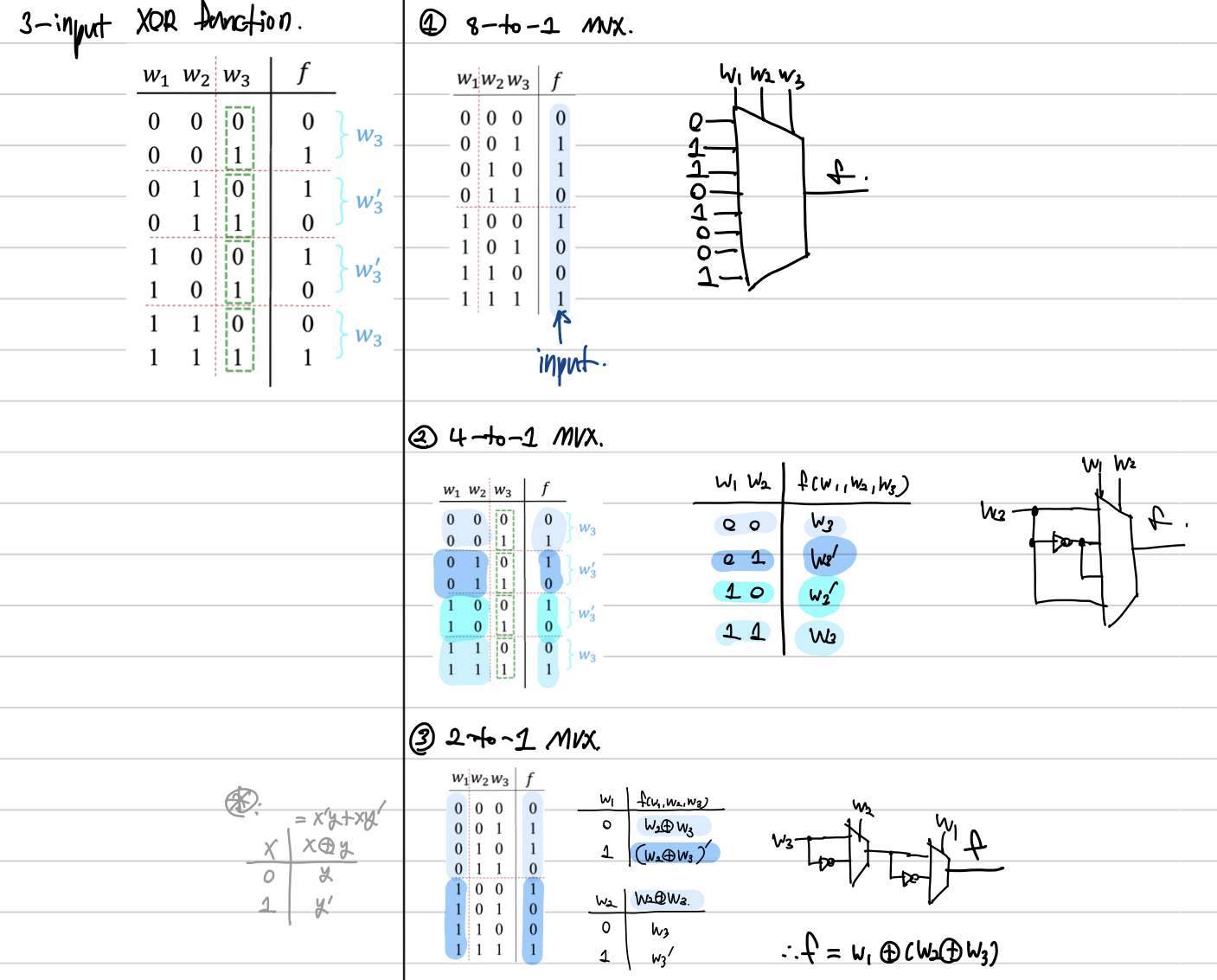 2. w1을 selector로 설정 -> 2-to-1 MUX로 구현 가능