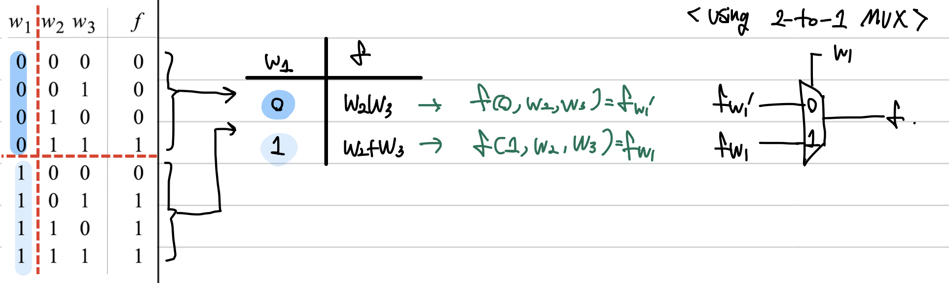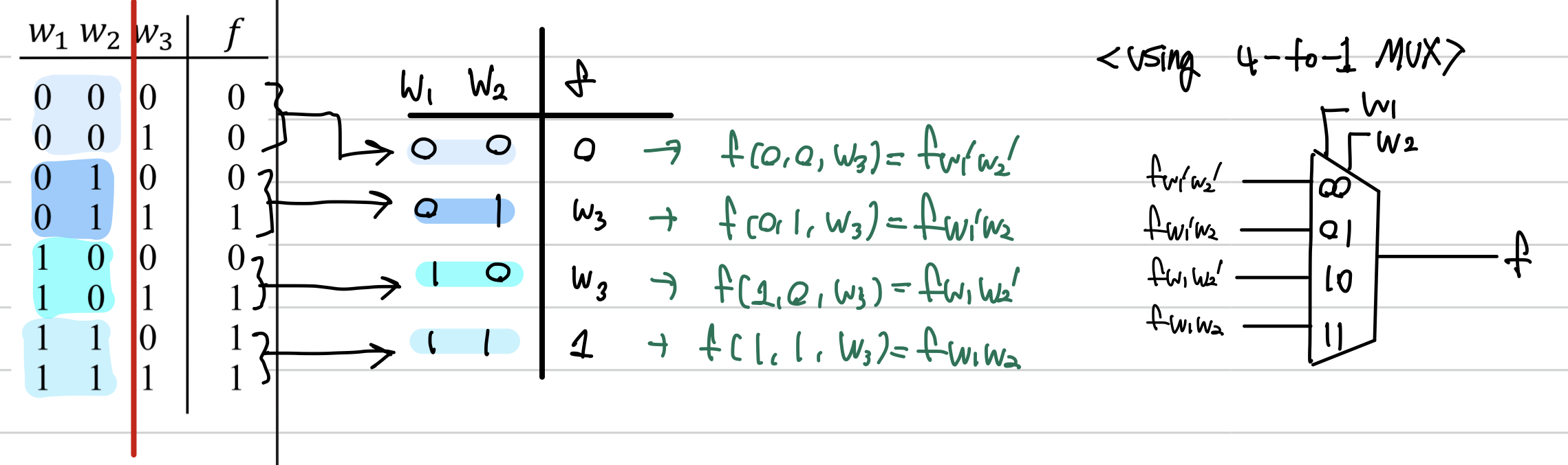 - 특정 변수를 selection bit로 뽑하내기 위한 확장이론이 바로 Shannon's Expansion Theorem임