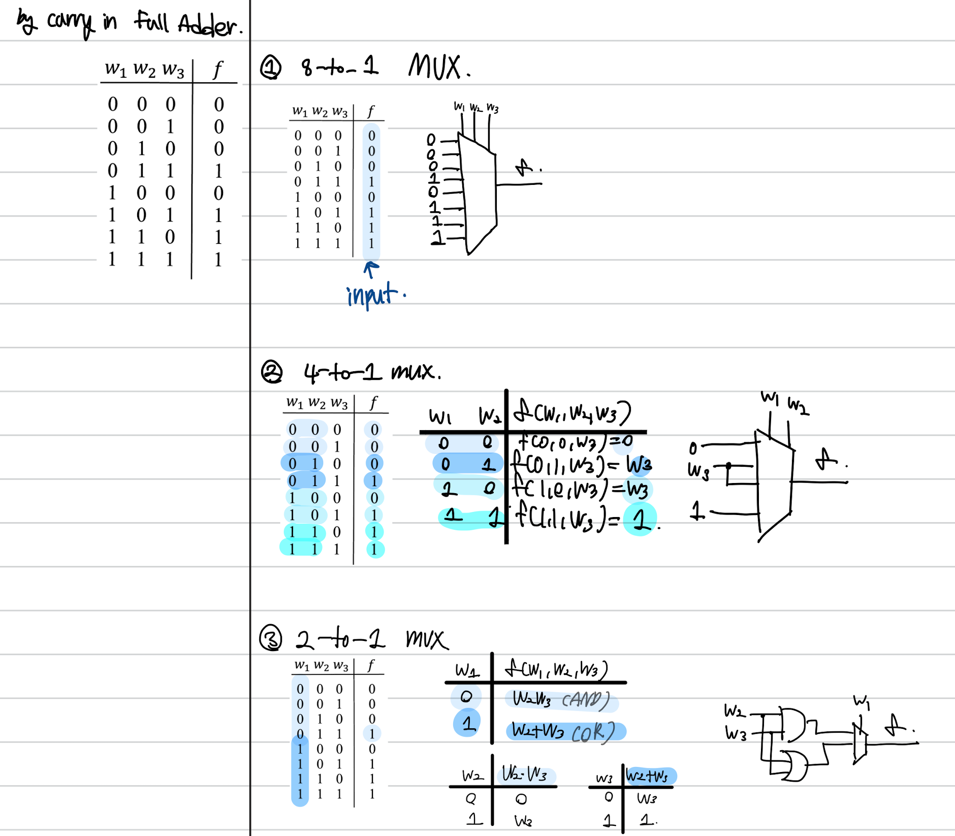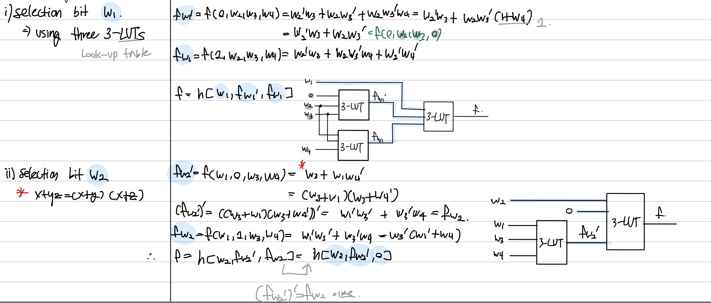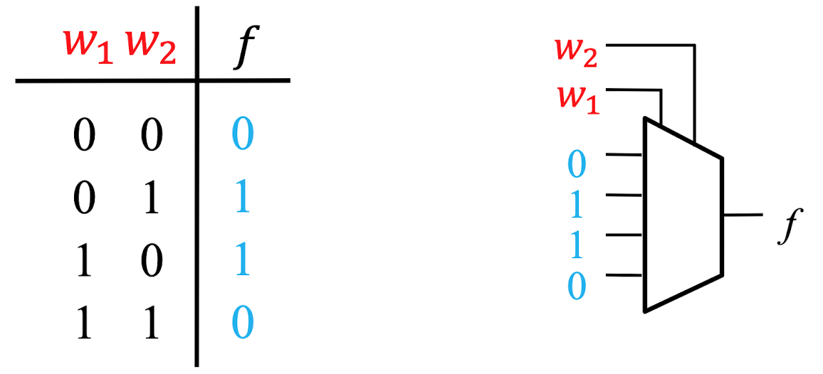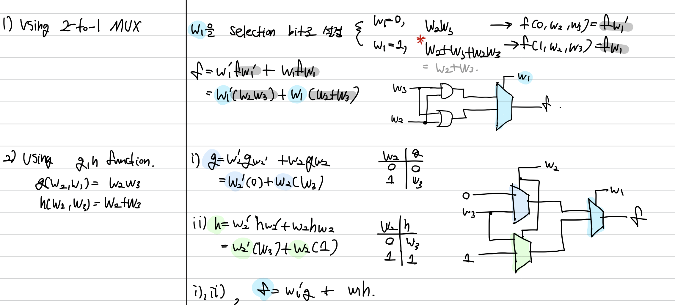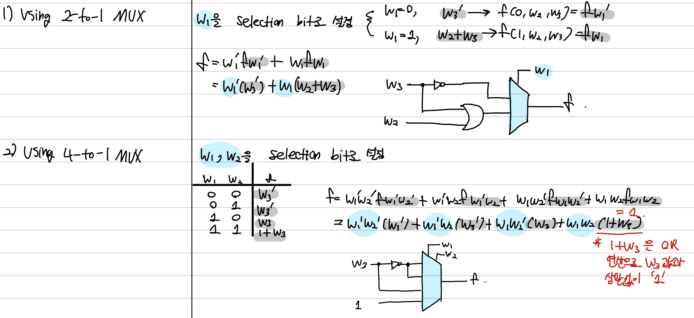 1. w1을 selection bit로 사용: 2-to-1 MUX로 구현