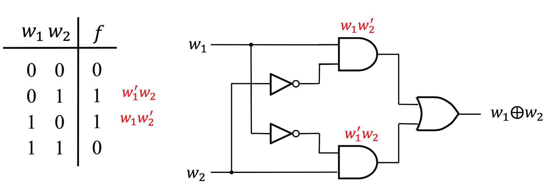 - w1보다 w2를 골랐을 때 더 간단하게 회로 구현 가능