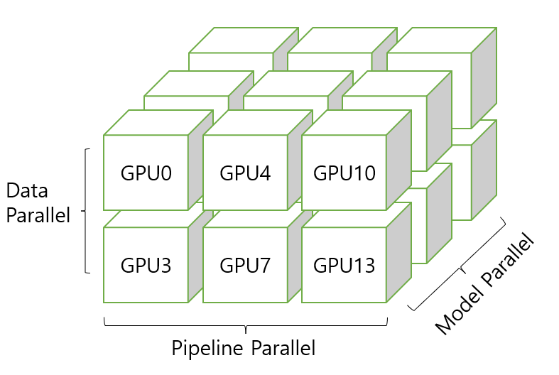 딥러닝 모델에서는 학습 시 대용량의 모델 크기와 학습 데이터 때문에 여러 GPU에 나누어 연산하는 분산학습(Distributed Training)이 이루어져야 GPU를 최대한 활용하여 효율적으로 학습할 수 있습니다. 이러한 딥러닝 분산학습에는 학습 데이터를 여러 GPU에 나누어 학습하는 데이터 병렬화(Data Parallelism)와 모델을 여러 GPU에 나누는 모델 병렬화(Model Parallelism)와 입력 미니배치를 여러 GPU에 나누어 실행하는 파이프라인 병렬화(Pipeline Parallelism)로 크게 세 가지 기법으로 나눌 수 있습니다.