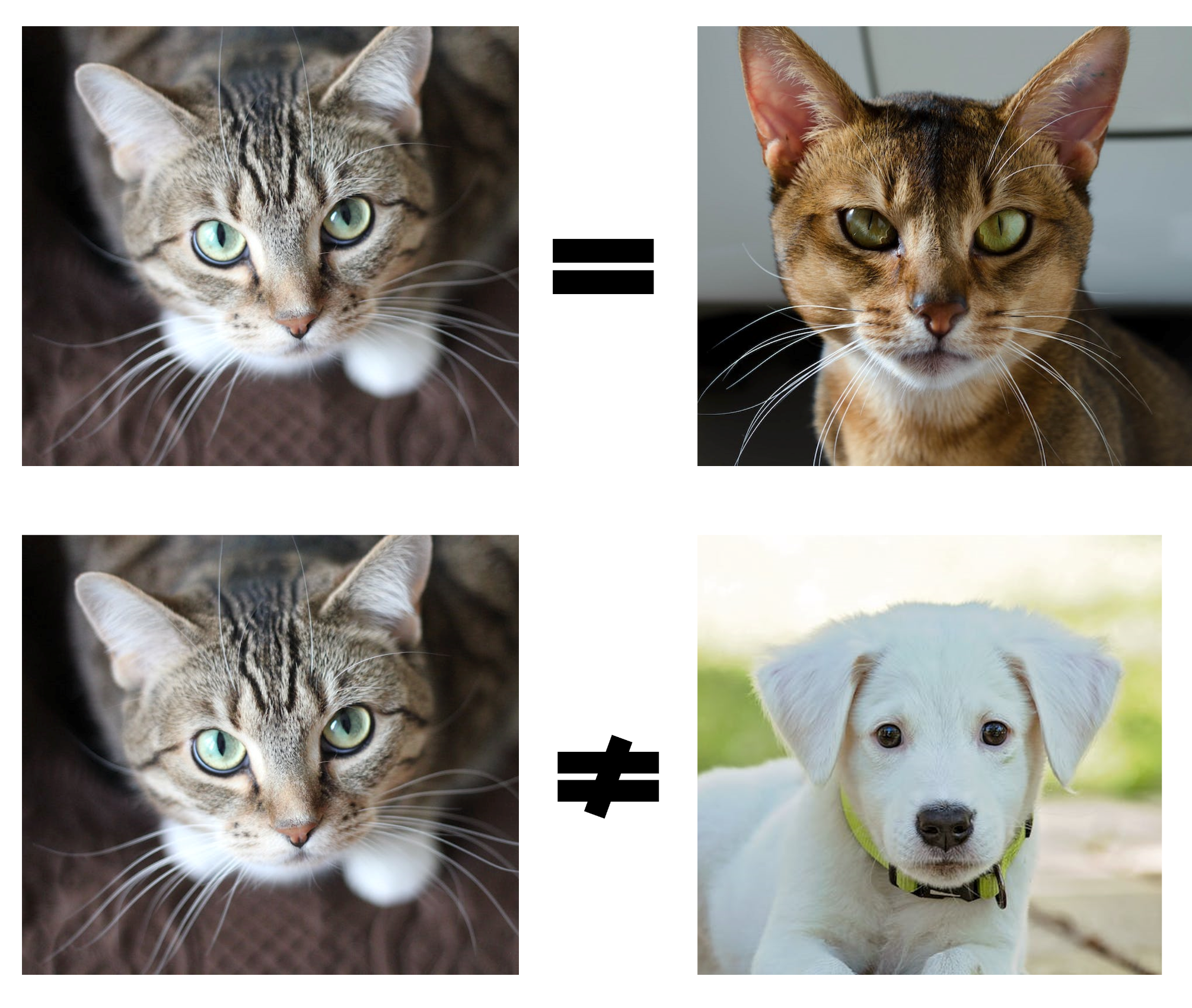 예로, 고양이와 개에 대해 아무런 정보가 없는 어린아이에게 아래의 세 장의 사진을 보여준다고 생각해봅시다.