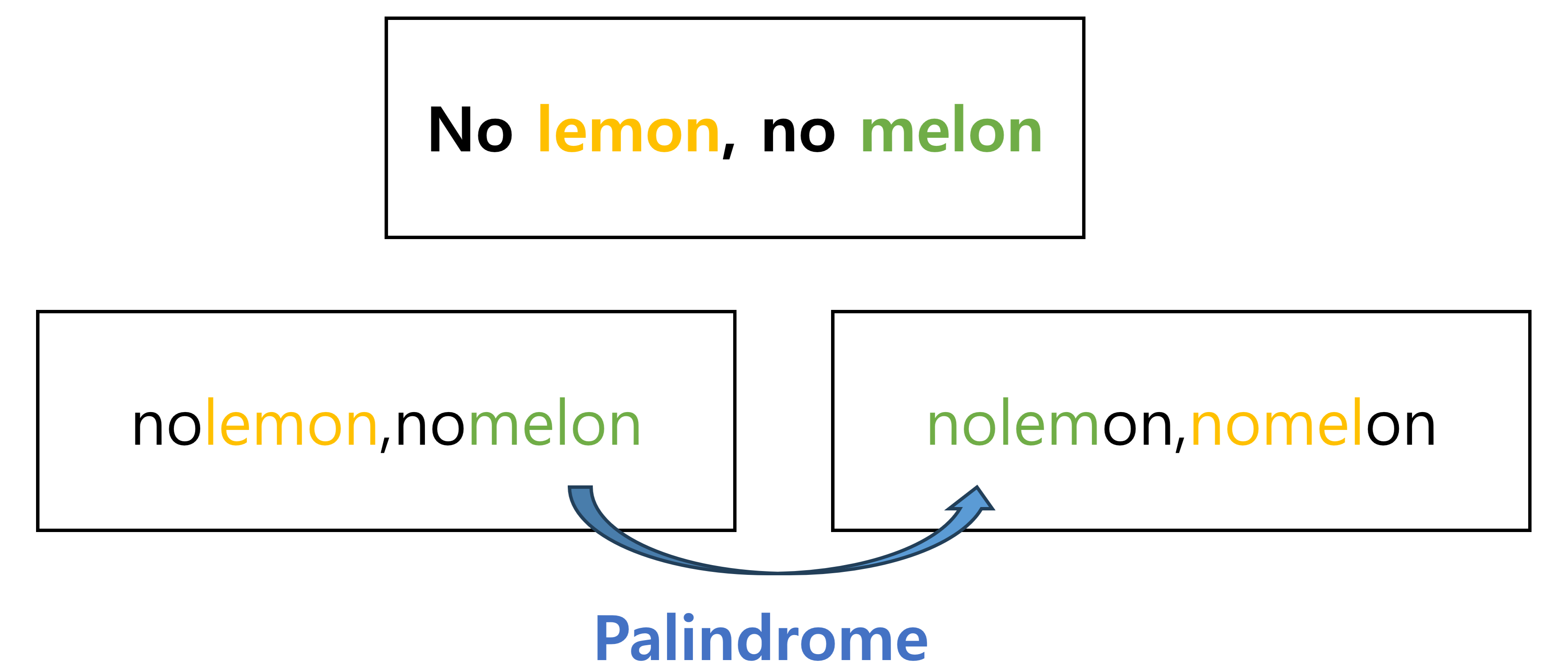 앞뒤가 똑같은 단어나 문장으로, 뒤집어도 같은 말이 되는 단어 또는 문장을 팰린드롬, 우리말로는 회문이라고 부릅니다. 영어의 회문으로는 "No lemon, no melon"처럼 뒤집어도 같은 알파벳 순서를 가지는 문장을 예시로 들 수 있습니다. 예시와 같이 회문은 보통 대소문자와 공백, 특수문자를 구별하지 않습니다. (단, 문제마다 정의하는 회문이 다를 수 있습니다)