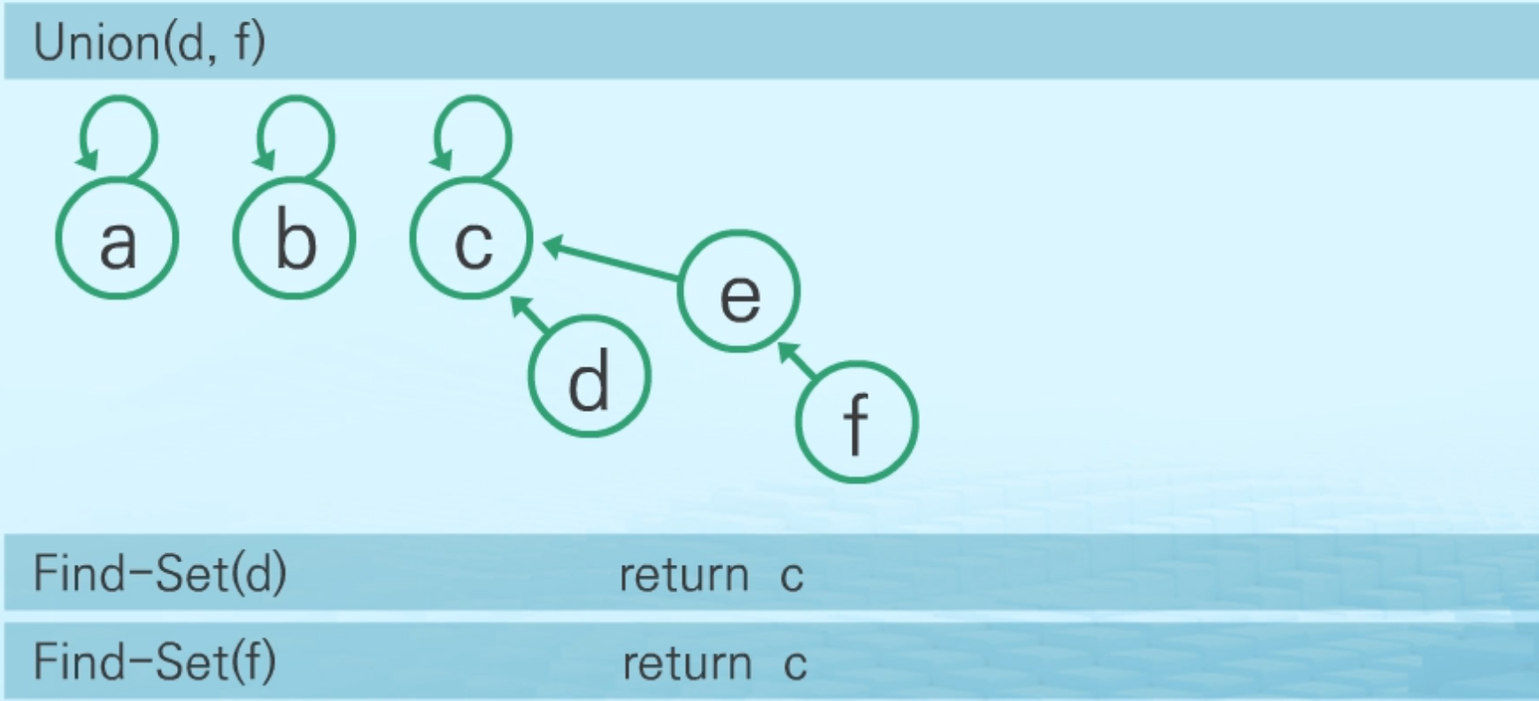 - Find-set(c): return b