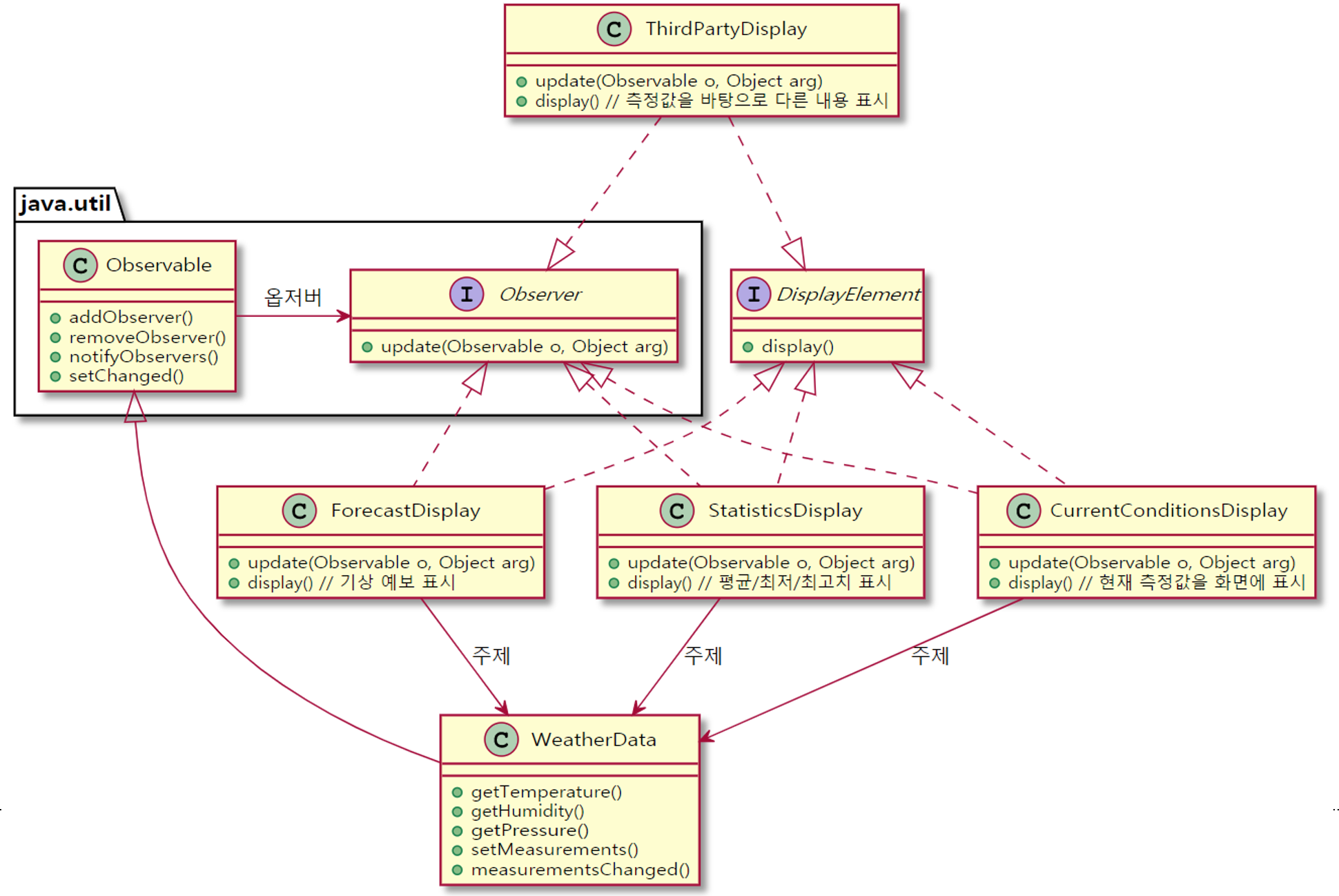 - java.util.Observable이 인터페이스가 아니라 클래스로 되어 있음