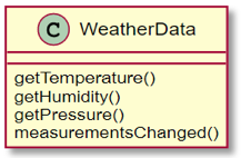 - Weather Data 객체 : 기상 스테이션으로부터 오는 데이터를 추적하는 객체