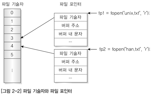 - 고수준 파일 입출력에서 열린 파일을 가리키는 포인터