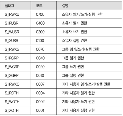 - 예: 0644 같이 숫자나 플래그 값으로 지정 가능