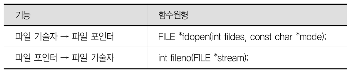 : 저수준 파일 입출력의 파일기술자와 고수준 파일 입출력의 파일 포인터는 상호 변환 가능