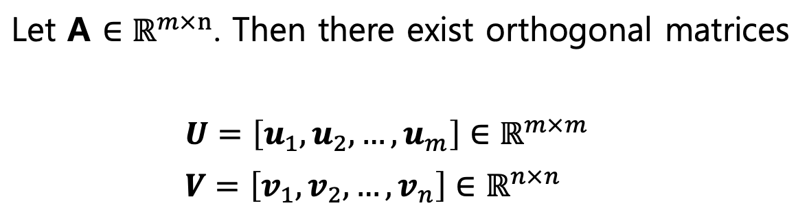 - 비정방행렬 A의 경우 아래의 식을 만족한다 $$rank(A) <= min(m,n)$$