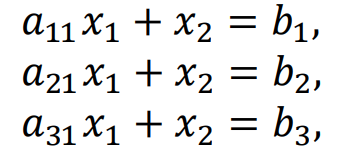 - 아래의 두 미지수를 찾는 것이 목적 (모델을 만들기 위해), 모델의 파라미터에 해당 $$x_1, x_2$$