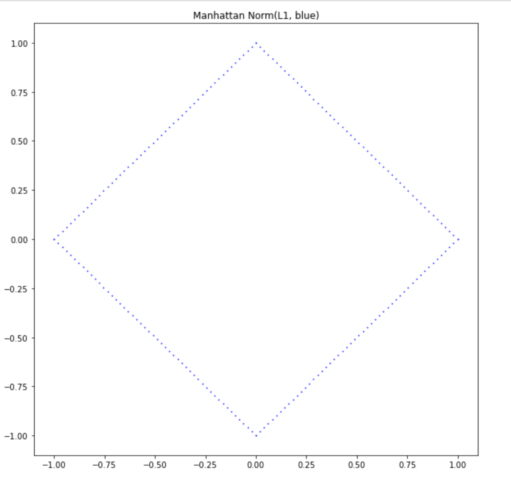 - 모든 벡터의 manhattaon norm이 1인 end point를 가진 그래프