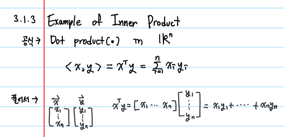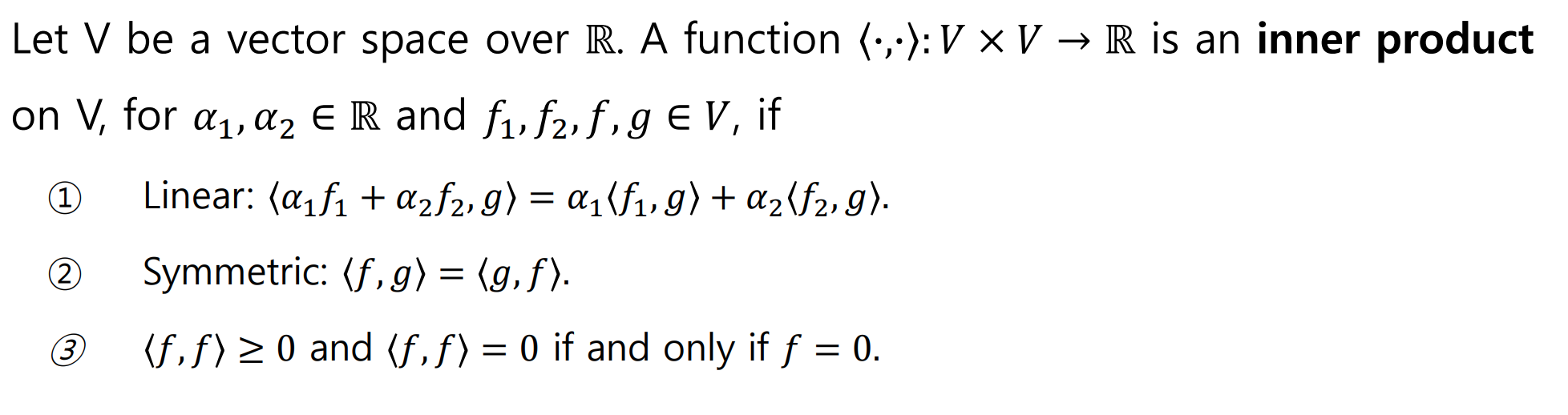 - Orthogonality Definition : <x,y> = 0일 경우 x,y는 서로 수직관계이다