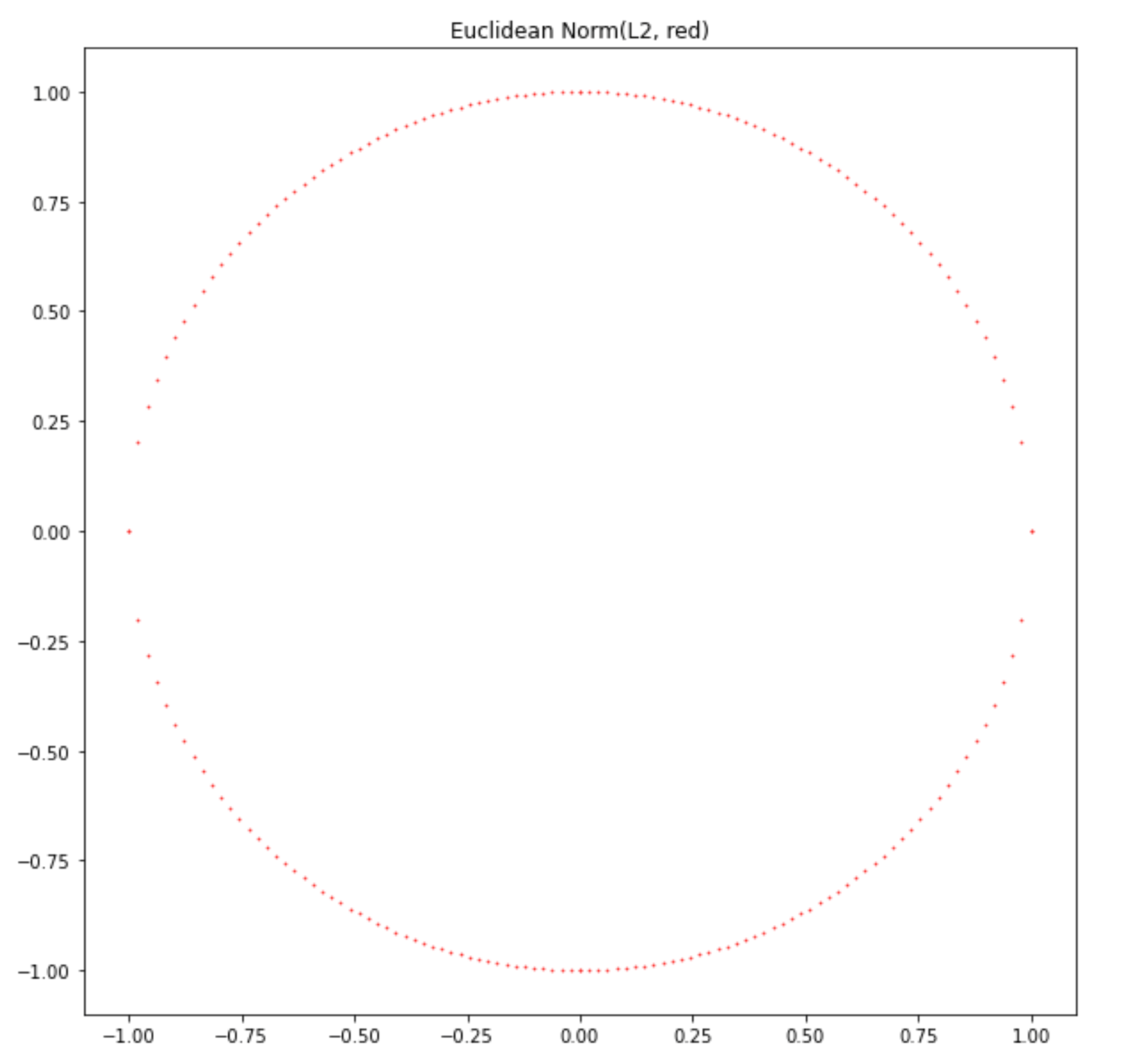 - 원점으로부터 거리가 1인 벡터들의 end point를 모아놓은 것