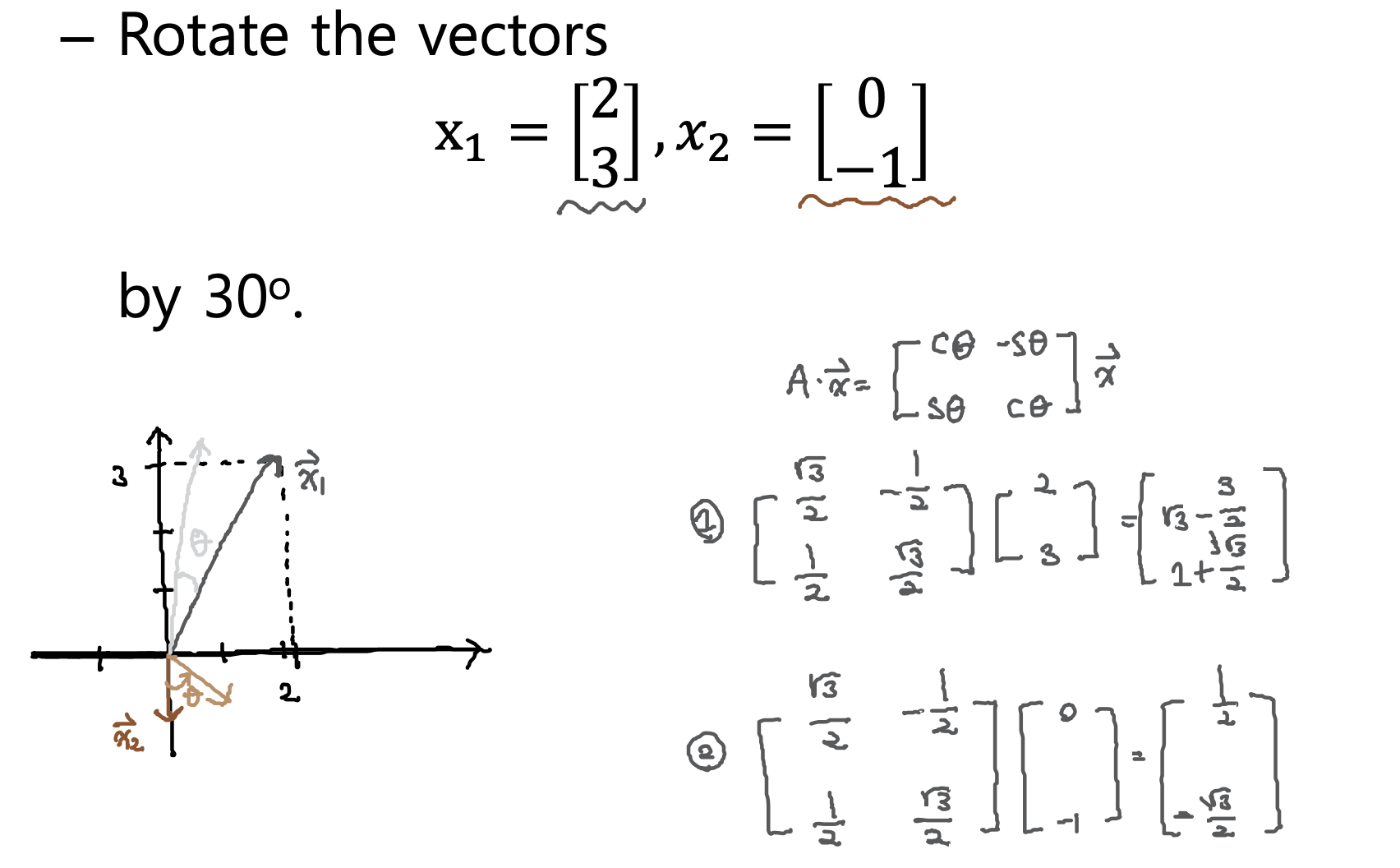 - 벡터의 크기는 변하지 않고 반시계 방향으로 θ만큼 회전