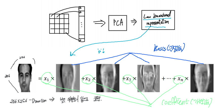 - 수학이나 엔지니어링 분야에서 Linear transform 사용 방법은 basis vector가 주어지면 데이터 b에 대한 coefficient들을 계산하나 기계학습에서는 basis vector들을 미리 정의하지 않고, 학습한다는 것이 큰 차이다.
