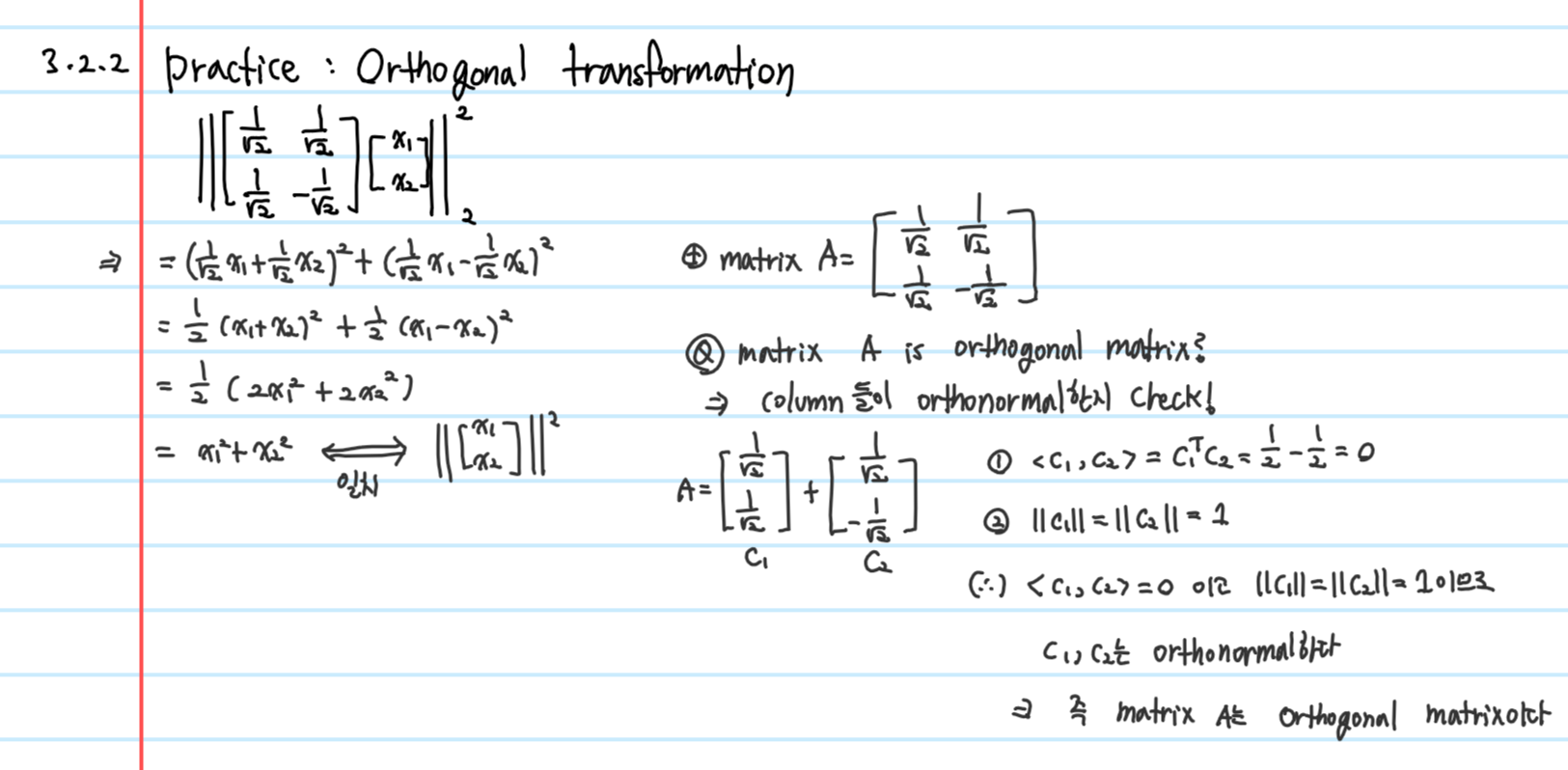 : column들이 모두 orthonormal한 경우만 정방향 매트릭스 A가 othogonal matrix이다.