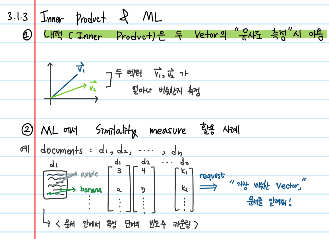 1. Inner product와 같이 두 벡터의 유사도 측정 시 사용됨