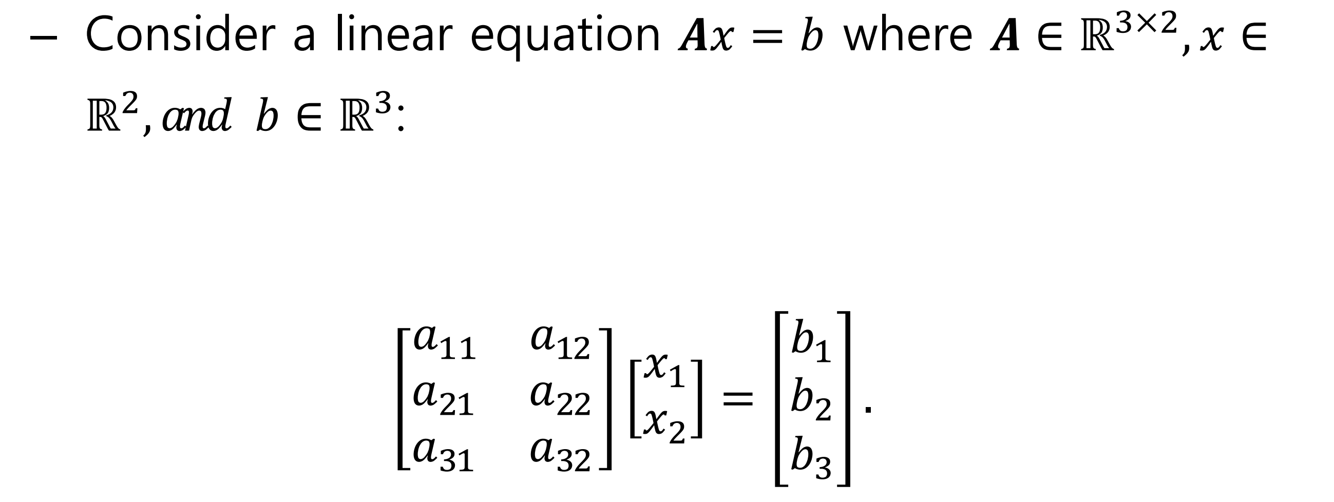 : 머신러닝에서는 대부분 식이 미지수 보다 많은 skinny matrix를 볼 수 있는데 이는 해를 구할 수 없는 형태로 approximate하게 구함