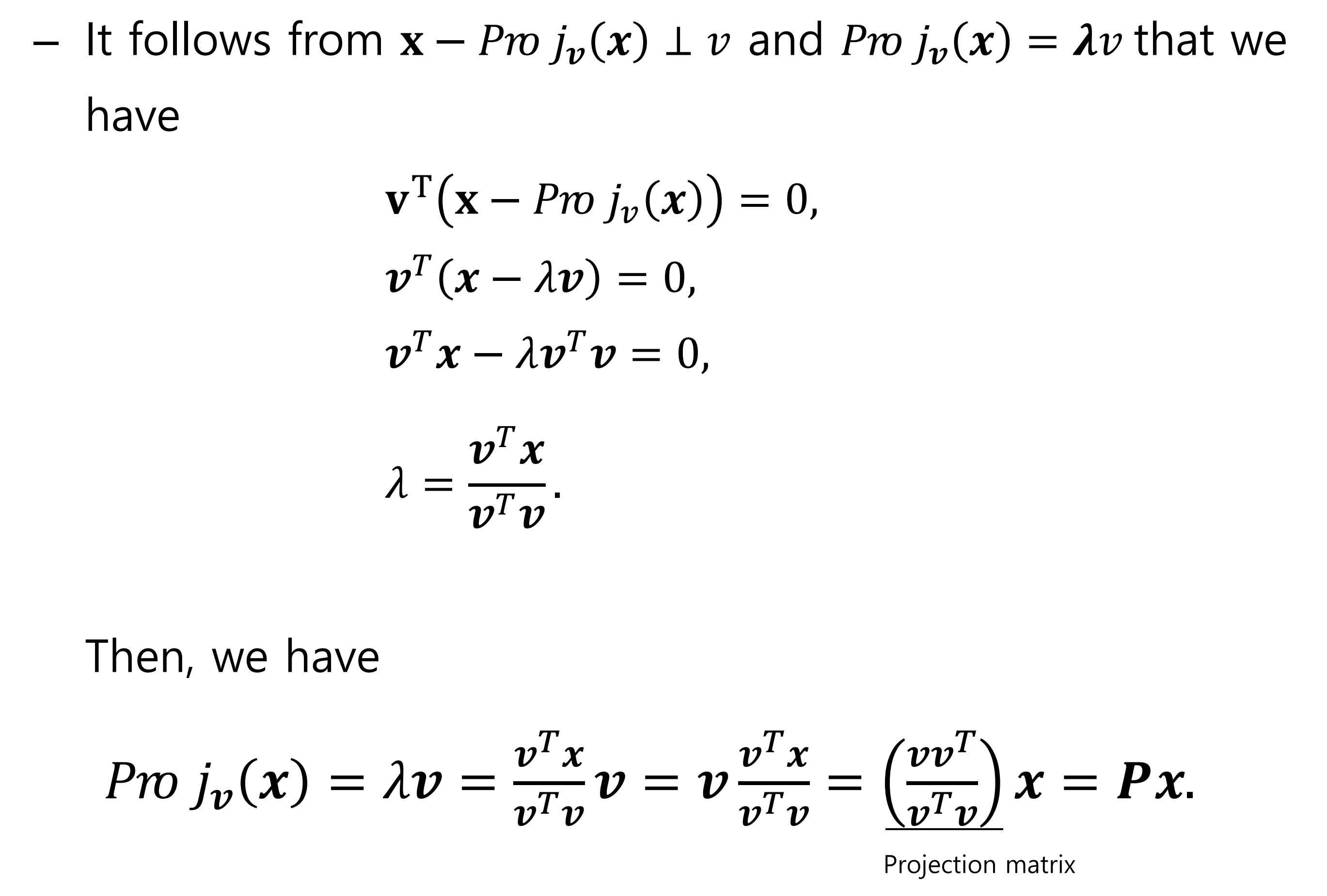 1. ML을 위한 수학에서 우리는 subspace로의 projection 자체를 배운다