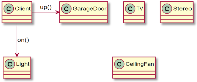 2. 예로, 해당 리모컨 개발 시 차고문, 전등, TV, Stereo, 에어컨 등 사용해야 하는 객체가 너무 많고 서로 다른 명령들로 구성되어 있음