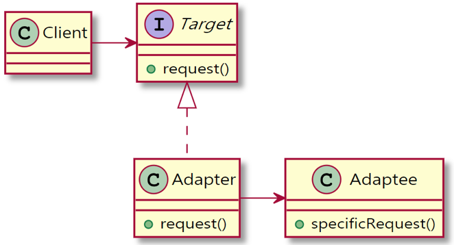 - 어떤 인터페이스를 클라이언트에서 요구하는 형태의 인터페이스에 적응시켜주는 역할을 함