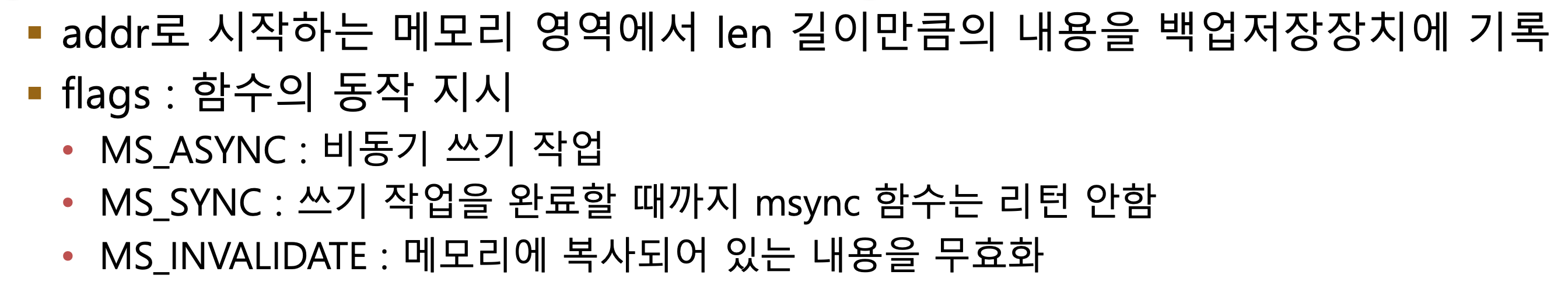 매핑된 메모리 동기화 : msync()