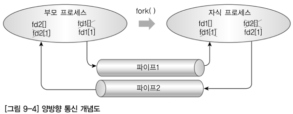파이프는 기본적으로 단방향이므로 양방향 통신을 위해서는 파이프를 2개 생성한다