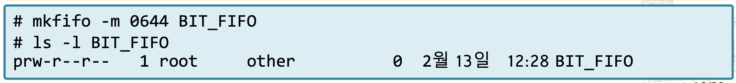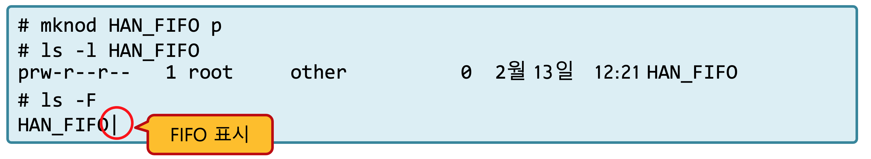 - FIFO로 사용할 특수 파일을 명령이나 함수로 먼저 생성해야 함